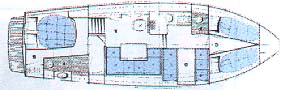 Kabine vorn: 2 Einzelbetten - Umbaumöglichkeit zu einem Doppelbett. Kabine hinten: 1 Doppelbett |